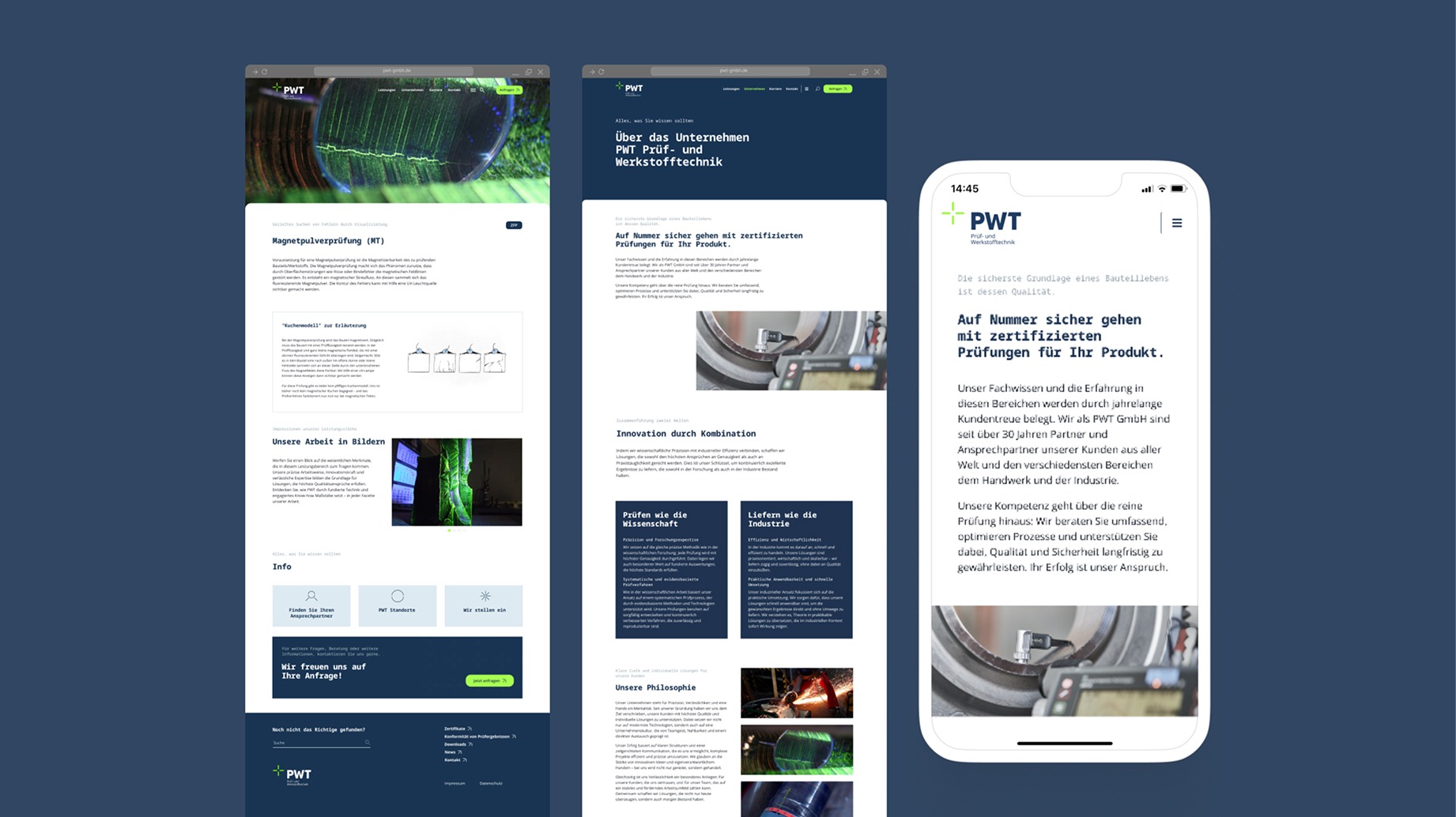 Die Website zeigt PWT als verlässlichen Partner in der Werkstoffprüfung. Durch klare Struktur, technische Präzision und verständliche Inhalte wird das Know-how des Unternehmens direkt erlebbar.