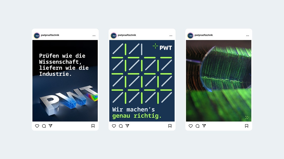 So wird die Marke greifbar, ihre Innovationskraft sichtbar und das Vertrauen in die Kompetenz des Unternehmens spürbar. Jede Seite unterstützt die Botschaft: PWT kombiniert wissenschaftliche Tiefe mit praktischer Erfahrung und agiert dabei schnell, zuverlässig und zukunftsorientiert.